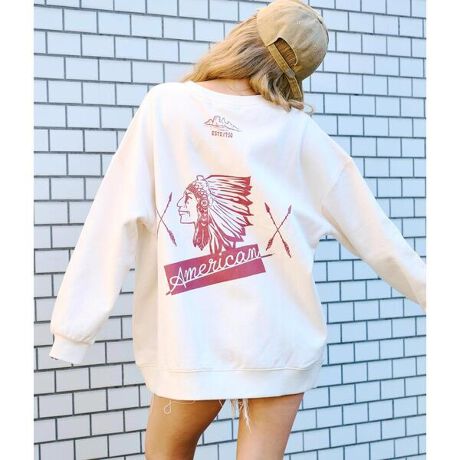 バックに施したインディアンプリントがインパクト大のスウェットトレーナー。
