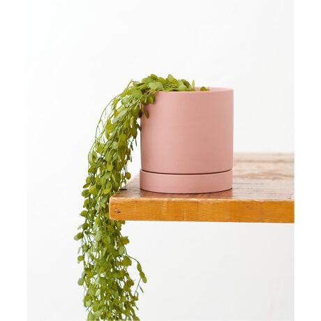 ソーサーがセットになった、セラミック素材のプラントポット。