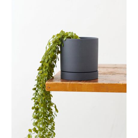 ソーサーがセットになった、セラミック素材のプラントポット。