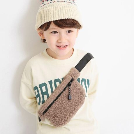 ボア素材のボディバッグをかけたような