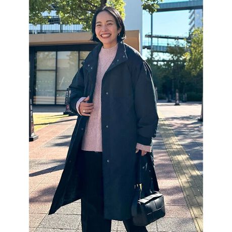 ふっくらとしたシルエットで暖かい着心地を実現する中綿入りロングコート。