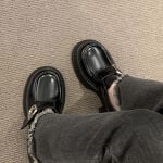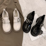 ・太めのベルトデザインがワンポイントで可愛い。シンプルなデザインのローファーにベルトがあることで可愛さを演出!!