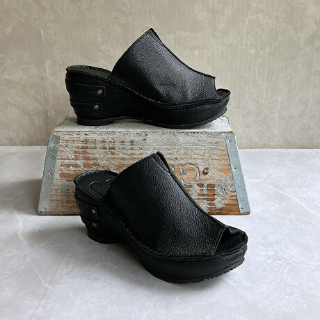 厚底のウェッジソールは弾力性、屈強性共に抜群で、まるで芝生の上を歩いているかの様な気持ち良さです。