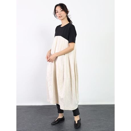 ・落ち着いた同色のドット柄を採用しており、大人に着ていただきたいドットワンピースに仕上げました。