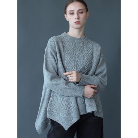 イレギュラーヘムケーブル編みニット
