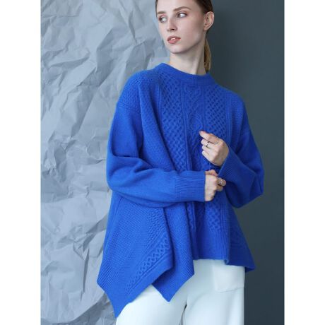イレギュラーヘムケーブル編みニット