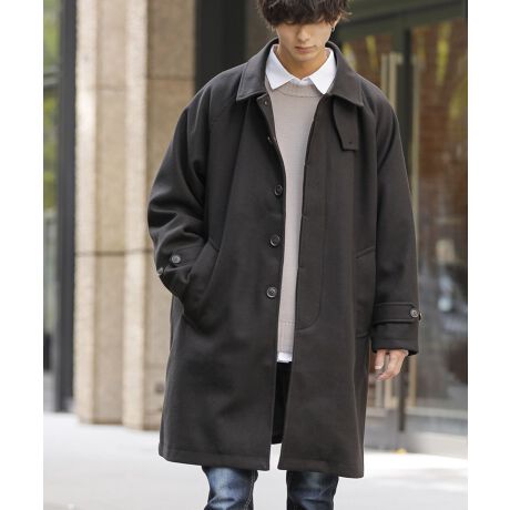 ストレッチ ウーリーテック メルトン オーバーサイズ ロング ステンカラーコート/ラグランスリーブ