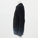 [型番:UK2504G21280D]裾の向かってエフェクト効果をつけた、ざっくりとしたコットンセーター。衿、袖、裾端はカールをかけたようなくるんとした仕上げ、左胸にジップポケットを備えたナイロン素材を貼付けたデザインです。