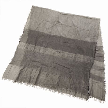[型番:AM9203A0224B]エッジを細かなフリンジ処理をしたストール、2配色のパターンでベージュはグレージュ、ウォッシュブラックはグレーで構成。幅90センチ×長さ220センチ