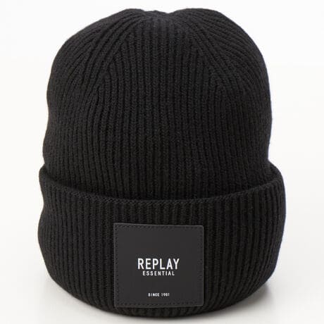 [型番:AX4312A7097]リサイクルカシミアを使用したシンプルなビーニーにロゴを配したデザイン