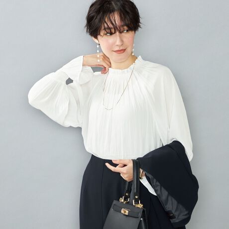 ・光沢とドレープ感がきれいな割繊素材のブラウス