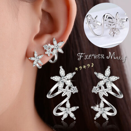 ユニークな形のスパイラル花モチーフレディースビジューピアス