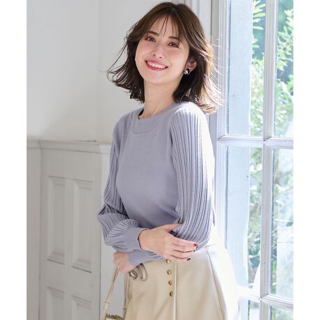 すっきりとした身頃とパフスリーブのコントラストが魅力のニット