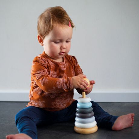 棒にリングを通して遊びながらお子さまの指先の発達を促します。