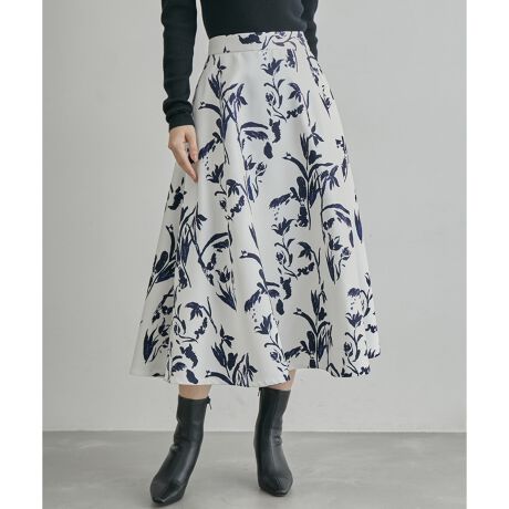 ジャストウエストで履くエレガントなフレアースカート。分量をタップり取って綺麗なフレアーが出るようシルエットに拘りました。