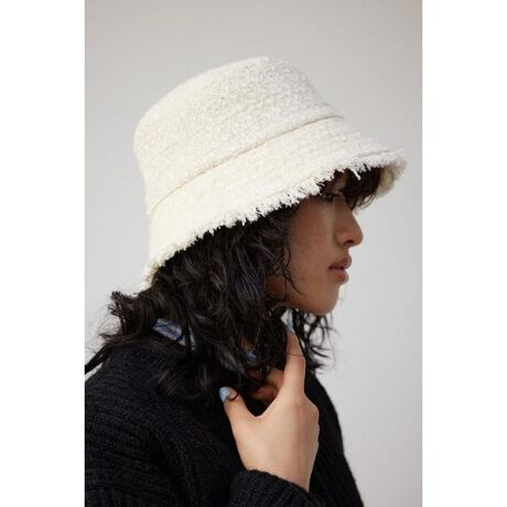 2023 Autumn&Winter item ・秋冬ムード高まるツイード素材を用いたクラシカルなバケットハットです。 ・光沢感のある糸がところどころ見えるので、マルチカラー以外のブラックやアイボリーも立体感があり高級感のある見え方に。 ・裾のフリンジ加工がピリッとアクセントになっておりかわいいだけではなくクールな印象に。 ・いつものコーディネートに取り入れるだけで、一気にトレンドスタイルに格上げしてくれる秋冬におすすめの帽子になります。