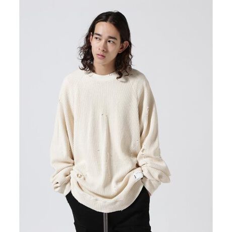 ROYAL FLASH 別注商品完全に一から企画して作成して頂いた1着になります。全体にクラッシュ加工を施したクルーネックワッフルカットソーです。シルエットはA.F定番のルーズシルエットで、フロントにつけられたタグもアクセントになっています。デザインがシンプルなので、着回しに重宝するアイテムです。A.F ARTEFACT/エーエフ・アーティファクト「デザイン性と主観的現実によるリアルクローズ」をコンセプトに、リッラクス感があり心地よさが感じられる素材使いで、着る人の個性を引き出せるようなフォルムや、リーン&ロングなバランスを追求しているブランド。
