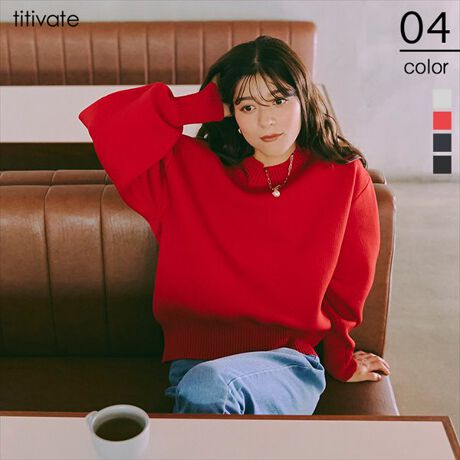 ・袖の立体的なボリュームシルエットが可愛いオーバーサイズニット。