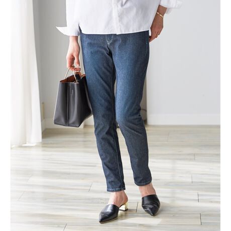 夏の定番素材、鹿の子ニットデニムを使用したマルチフィットスリムパンツ。
