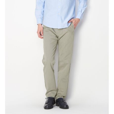 ミニヘリンボーン調の織り目ですっきりはきやすいレギュラーストレートのシルエットはビズスタイルにも最適です。