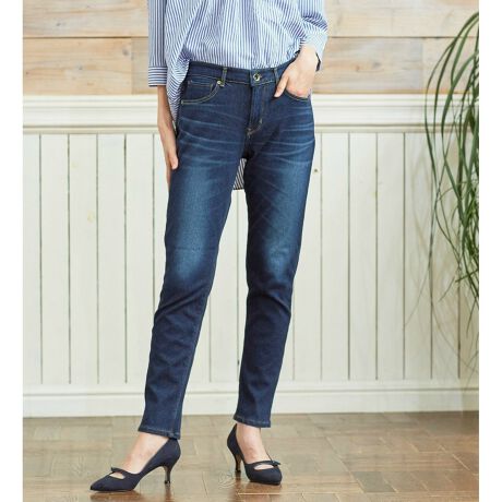 デニム(COLOR:インディゴブルー、濃色ブルー、中色ブルー)は、素材変更したことで伸びて縮む力が大幅にアップ。