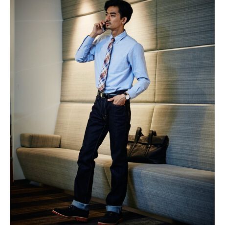 ヒップ、ワタリ、モモは細めにすっきりとシャープなフィット。