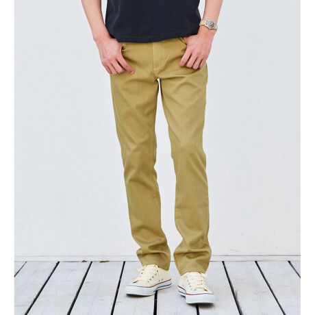 シルエットは、ヒザからスソにかけてやや細め。すっきりはけるレギュラーストレートです。