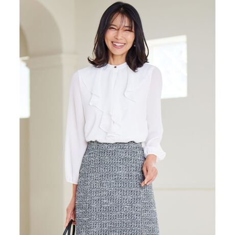 しなやかな素材感が上品な、フリルデザインブラウス