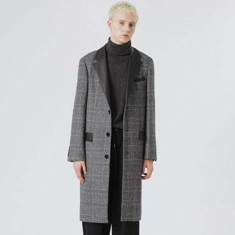 シンセティックレザー切り替えがアクセントとなるグレンチェックチェスターコート