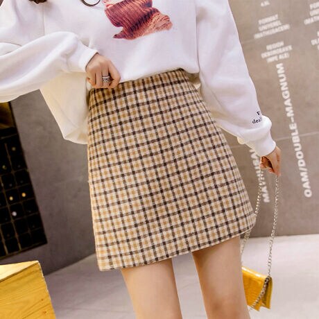ウォーム感のある生地で季節感たっぷりに仕上げた台形シルエットのチェック柄スカート