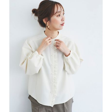 甘めのディティールですが、バンドカラーなのできちんと感もありオフィススタイルとしても◎