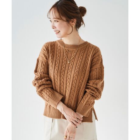 ホリデーシーズンに着たくなるような色展開のケーブルニット。