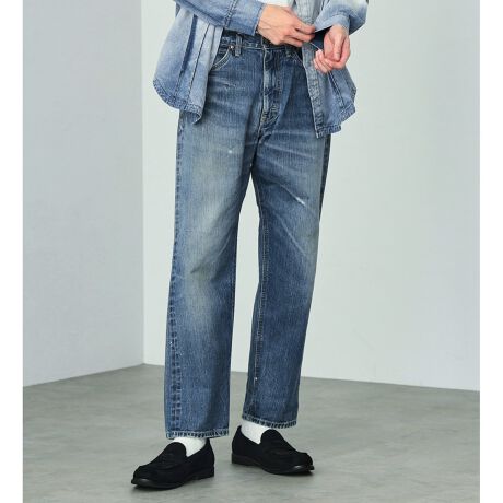 インディゴ未洗いは水の量を最大限減らし、生風の洗いを施した加工となっております。中色ブルーは古着をモチーフにしたビンテージ加工、淡色ブルーはビンテージ加工をデータとしてトレースし、反転させたレーザー加工となっております。