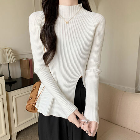 柔らかくて肌ざわりのいいモックネックニットトップスです