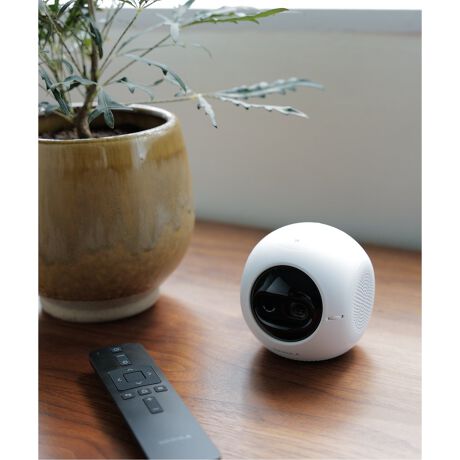 りんご程のコンパクトサイズ&約380gの軽量設計で気軽に持ち運びが可能。台形補正機能を搭載しており、寝室の天井やリビングの壁等、自宅の好きな場所でお気に入りの映画やゲーム、音楽等のコンテンツを最大100インチの大画面でお楽しみいただけます。動画であれば約2.5時間の連続再生が可能です。