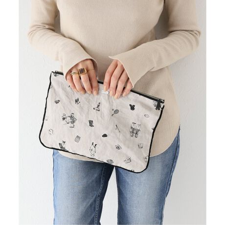 【R&D.M.Co】B.S EMBROIDERY LINEN POUCH L リネンポーチ
