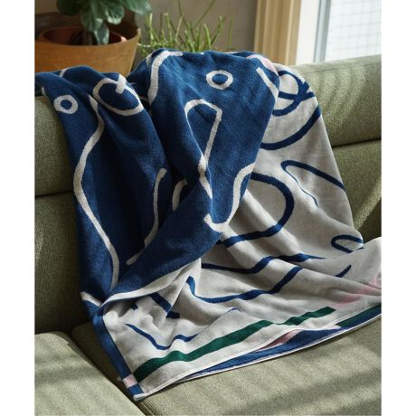 白い壁に映え、どんなインテリアにも合わせやすいタオルブランケット。