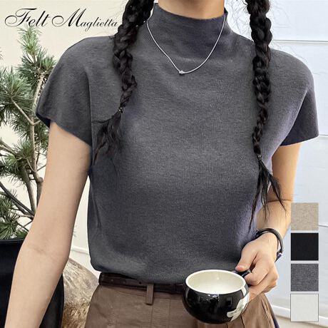 ベーシック ハイネック半袖ニット