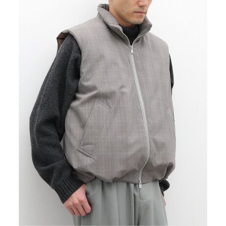 表にリサイクル原料のポリエステル/ウール素材を使用したパテッドベスト。