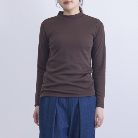 ひまわりオイル加工でしっとりとした着心地が嬉しい♪ハイネック長袖が新発売♪【ひまわりオイル加工】生地はひまわりオイル加工を施し、しっとりとした心地よい肌触りが一番の魅力♪天然素材のオイルで肌に優しいのもGOOD。【ふんわり裏起毛】裏地は暖かさをKEEPできる、起毛素材を採用。秋冬の寒さ対策にピッタリ!【着ぶくれしない】重ね着をしても着ぶくれしない厚すぎない生地感も嬉しいポイント♪おしゃれを楽しみながら寒さからガード!【トップスにも】インナーが透けて見えないから、トップスとして使うのもおススメ♪