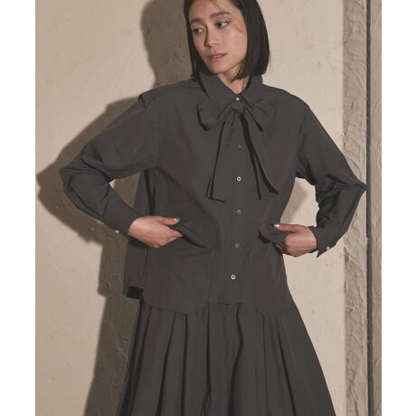 【Audrey and John Wad】ボウタイ付きアウトポケットシャツ-手洗い可-