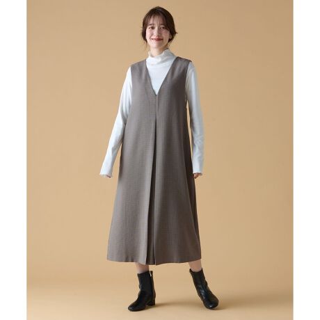 楽ちんなのにスッキリシルエットでスタイルアップ見えする、ウーリッシュジャンパースカート