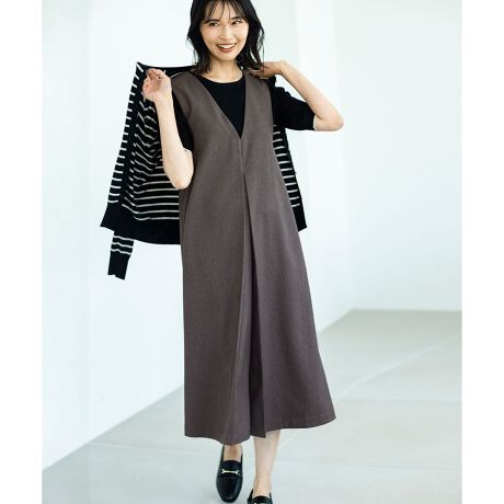 楽ちんなのにスッキリシルエットでスタイルアップ見えする、ウーリッシュジャンパースカート