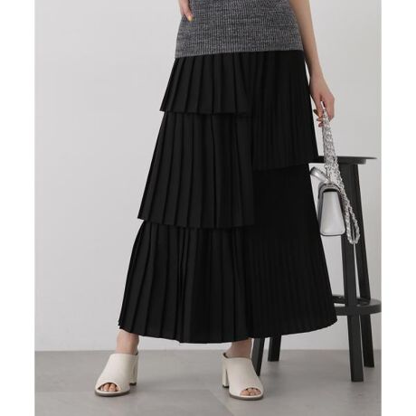 左右で異なる切り替えを入れたアシンメトリーなレイヤードスカート。ウエストはゴムを入れラクなはき心地。歩くたびに軽やかな動きがでて、大人のフェミニンカジュアルを叶えてくれます。季節に合わせて、ニットプルオーバーやカットソーなど、幅広いトップスと着回しできるデザイン。ポリエステルのデシン素材を使用しているため、シーズンを選ばず着用いただけます。