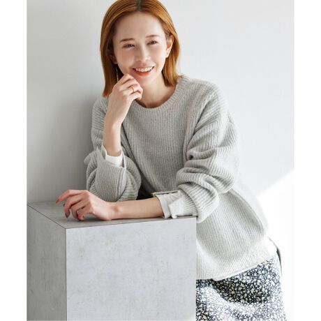ニットは毛足のあるもっちりした肌触りのアルパカ混の素材を使用。