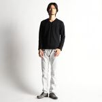 膝から裾口にかけて少しストレートなシルエットに設定した細身の綺麗なシルエットに仕上げています。股下はフルレングスなので裾上げして調整して下さい。