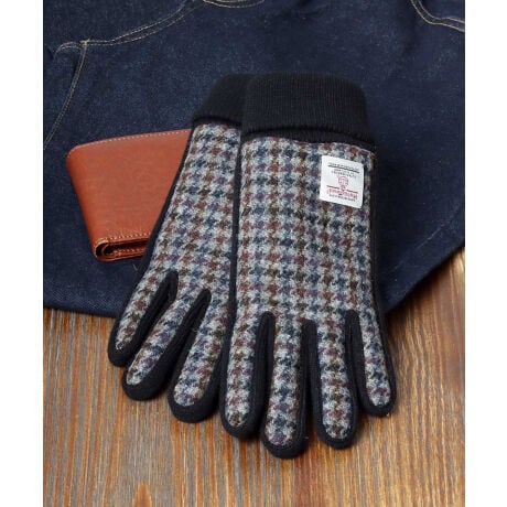 Harris Tweed/ハリスツイード 格子柄 ツイード ピックレザーグローブ