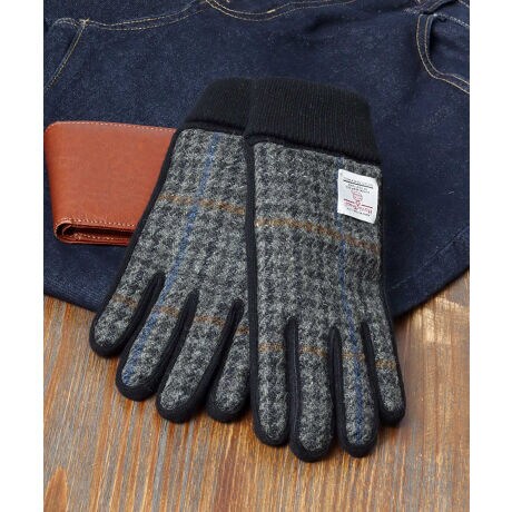 Harris Tweed/ハリスツイード 格子柄 ツイード ピックレザーグローブ