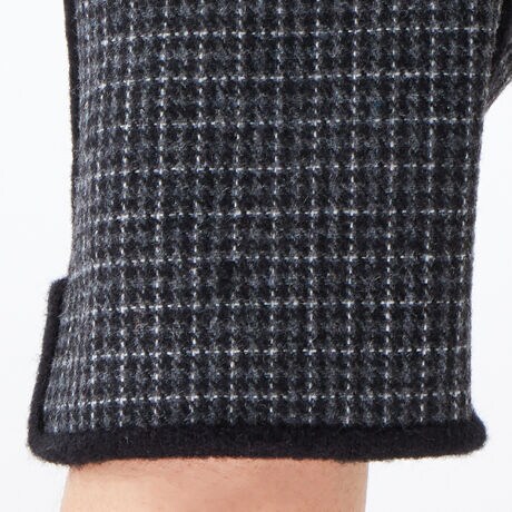 スリットから人差し指先と親指先が出せるので、スマホやタッチパネルの操作が可能です。チェックと単色のコンビ手袋でオンオフ問わずお使いいただけます。甲部に裏地が付いているので暖かです。