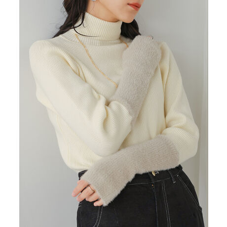 袖口がショートシャギーニットに切り替わったハイゲージニットプルオーバー。